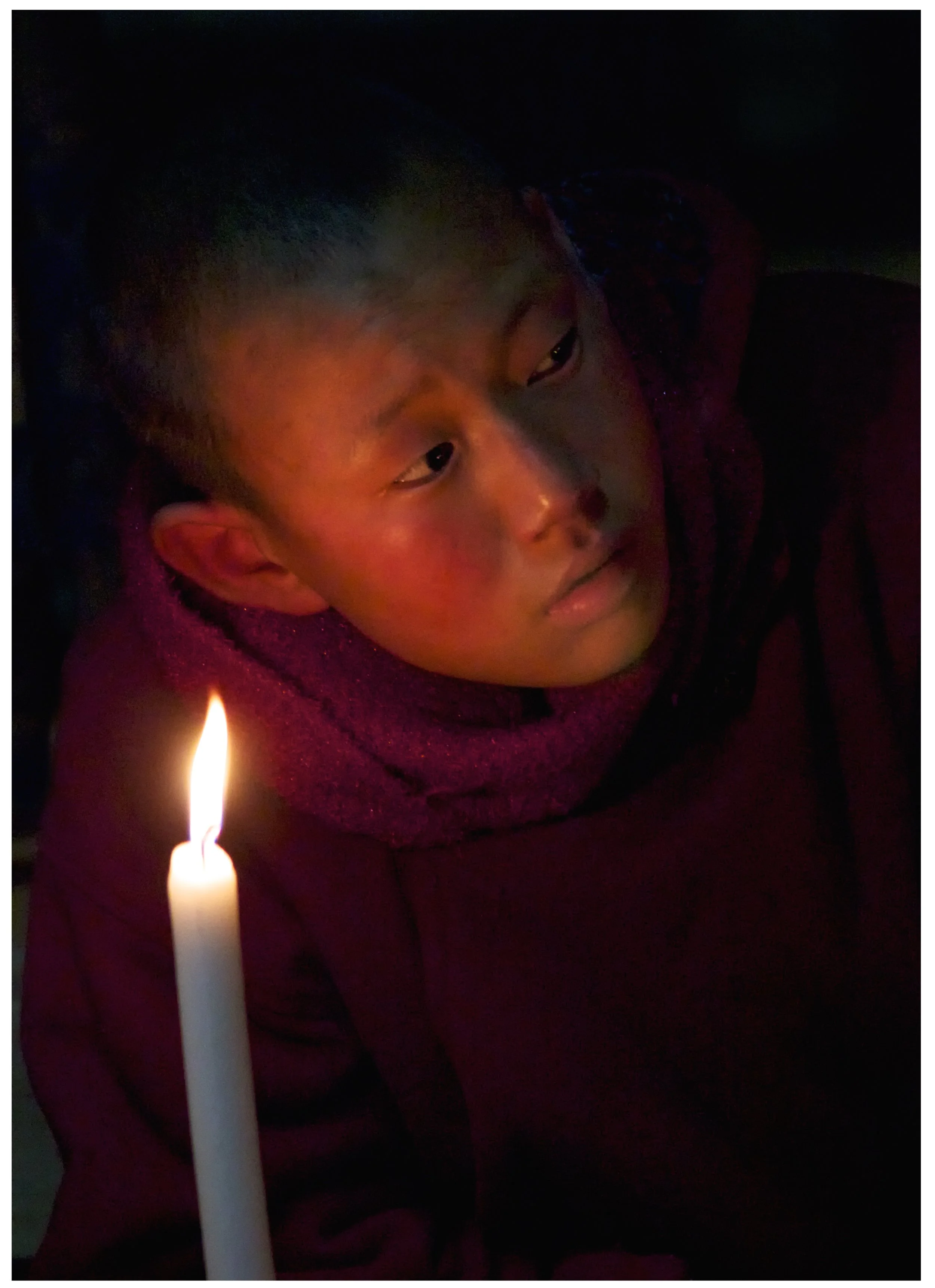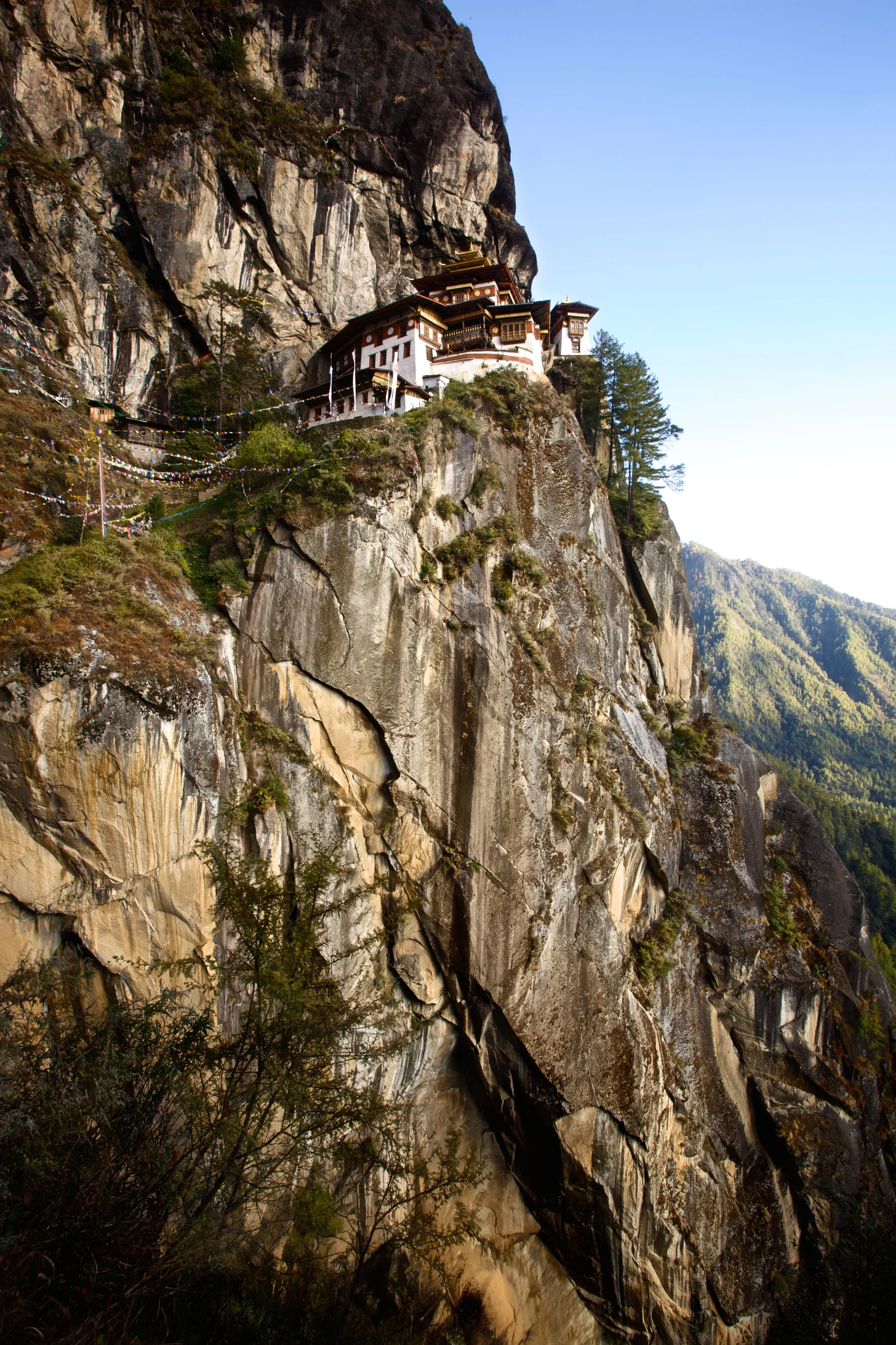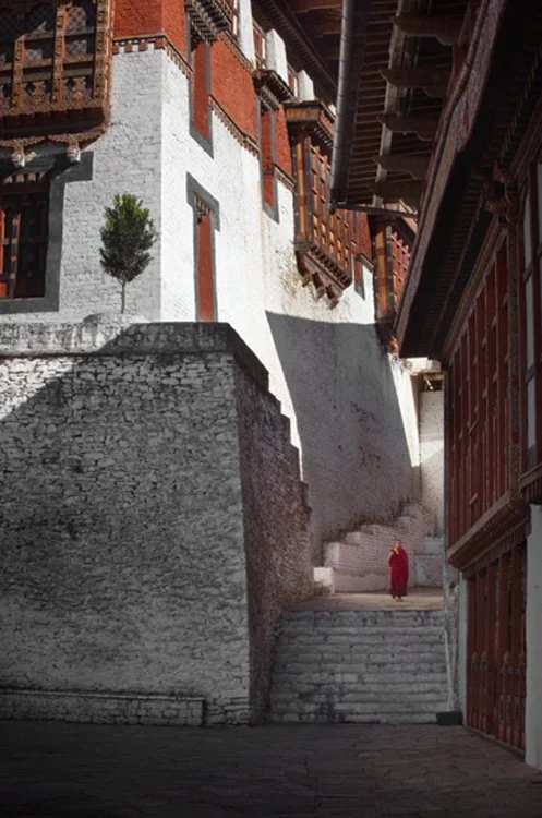 Bhutan is the last of the Himalayan Kingdoms. It is a small country where everyone I've met speaks English very well and likes to be photographed. It seems like half the country is made up of Buddhist monks in red robes; the other half, farmers in their traditional costume, the gho. Bhutan's remoteness has preserved its ancient architecture and reverential way of life. Prayer flags flutter in the clean air of the mountain passes, the unpaved roads bend themselves around mountain shrines. Hillsides with ancient trees are clothed in mist and cloud.