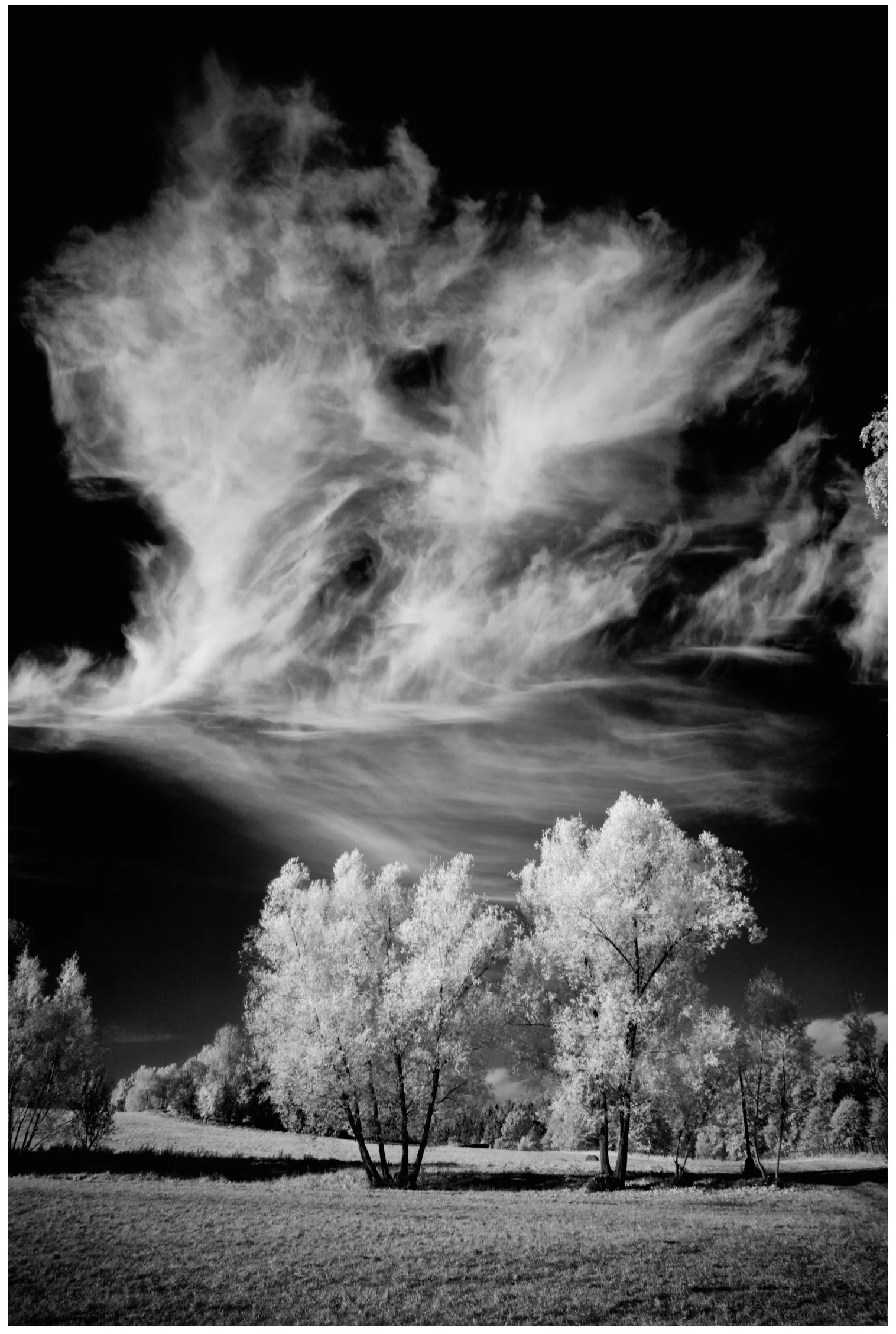 Infrared does not pretend to be realistic; it is a tool that I can use to interpret the scene before me with new eyes. It reveals a marvelous world where blue skies are almost black, and white clouds float in sharp contrast to the sky. Infrared transforms vegetation into bright, shimmering foliage. Trees and plants dance against old stone walls and against a dramatic sky. Human faces take on an alabaster glow. Infrared is a new way to view the world.